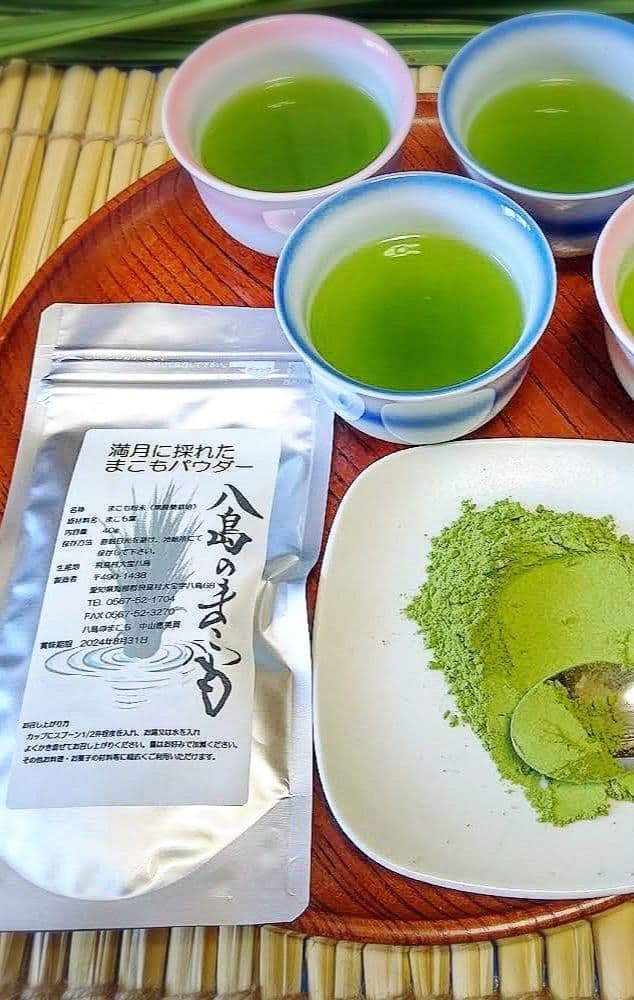 初夏の満月に若葉だけを刈り取り、パウダーに加工しました。ノンカフェインで、抹茶のようにしてお湯で溶き、召し上がっていただいても、牛乳や豆乳で溶かしてオレでお飲みいただいても美味しいです。お菓子の材料やお料理にも幅広くご活用いただけます。