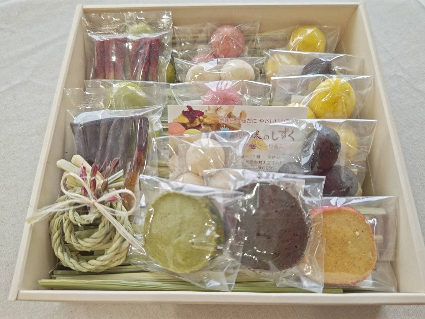 新作の、真菰炭コーヒーのパウンドケーキや定番の、しずく玉にマドレーヌ。人気のフォンダンマコモとサンドクッキーに、マコモグラッセと菊芋チップスも加わって、美味しく、身体にいいお菓子を厳選詰め合わせしました。